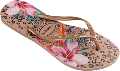 Strong, comfortable, bold Havaianas slippers for women. All round rose gold colour.
