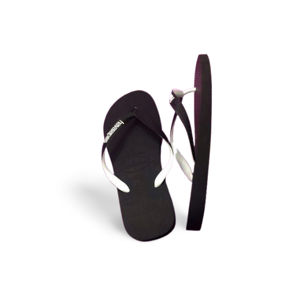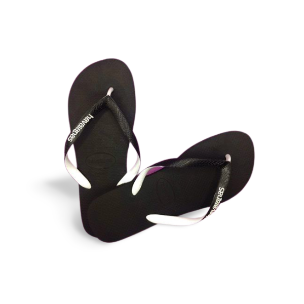 Redesigned Top Mix slippers with ultra slim straps and dotted interior. 2 sided straps with clean white at the base and black at the top of the straps.
