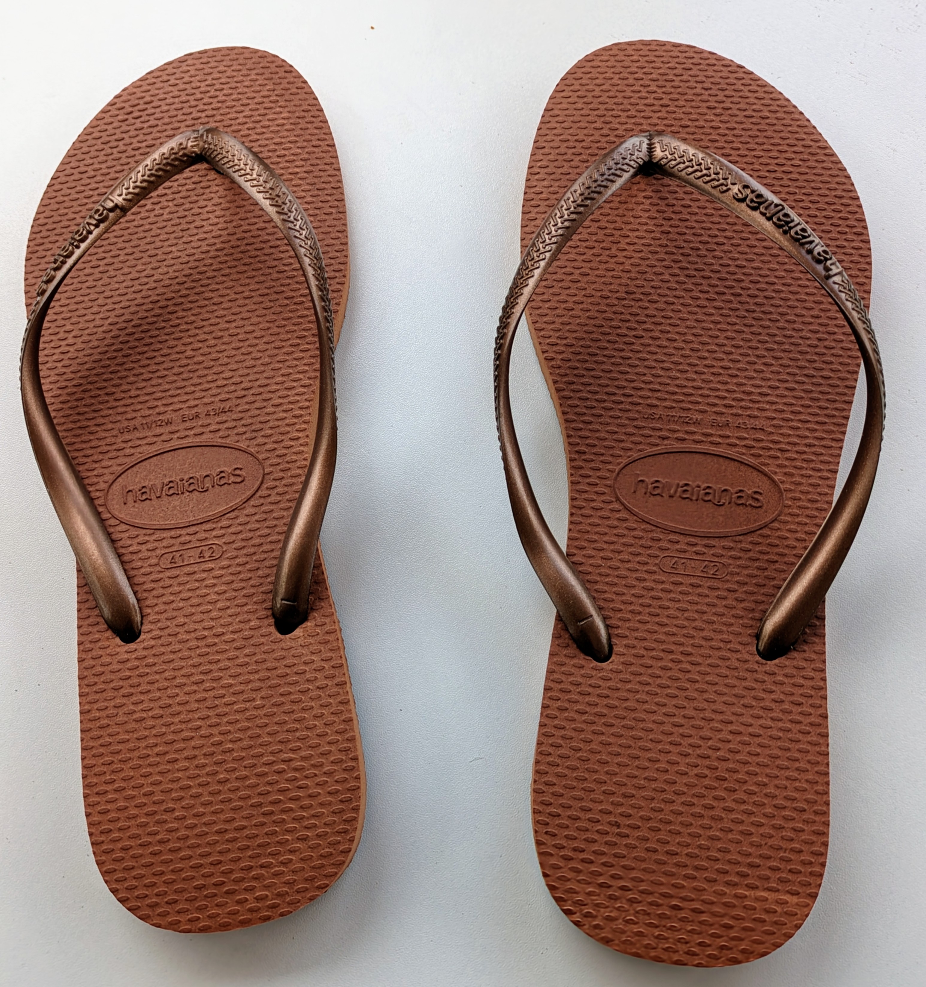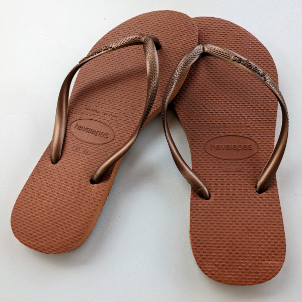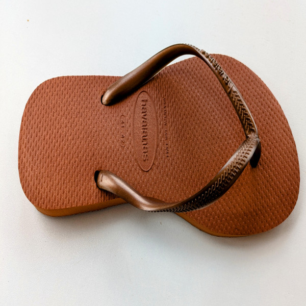 Super comfortable, slim, gentle and durable Havaianas slippers for women. Metallic Copper colour.